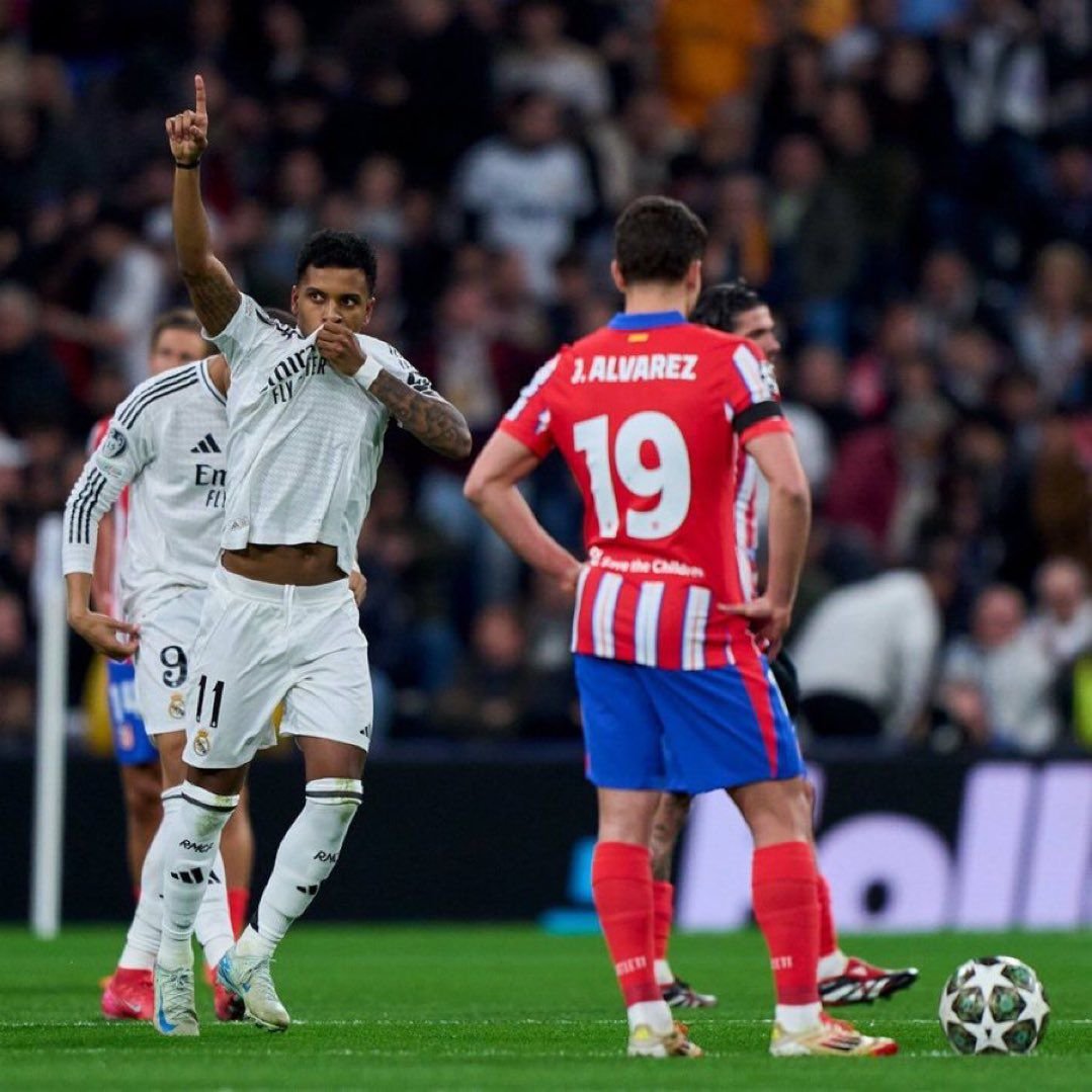 Real Madrid secured a hard-fought 2-1 victory over regional rivals Atletico Madrid at the Santiago Bernabéu on Tuesday night in a highly anticipated UEFA Champions League play-off first leg.Goals from Rodrygo and Brahim Díaz in the second half proved decisive as Los Blancos took a crucial step toward advancing in Europe’s premier club competition.The match began with Real Madrid asserting their dominance early on. In the 4th minute, Federico Valverde orchestrated a sublime through ball to Rodrygo, who showcased composure beyond his years as he calmly slotted the ball past Atletico’s stalwart goalkeeper Jan Oblak.The early goal set the tone for a fiercely contested derby, with Real Madrid looking to capitalise on their strong start.The hosts continued to press and nearly doubled their lead shortly after. Brahim Díaz, displaying exceptional awareness, flicked the ball into the path of Vinícius Jr., whose inventive effort was denied by a last-ditch block from Atletico defender José Giménez.Despite Real Madrid’s early dominance, Atletico gradually found their footing and began to threaten Thibaut Courtois’ goal.Their persistence paid off in the 32nd minute when Álvarez produced a moment of sheer brilliance to level the score. From a tight angle on the edge of the box, the Argentine unleashed a stunning curling strike that nestled into the far top corner, leaving Courtois rooted to the spot.The goal, a strong contender for goal of the season, reinvigorated Atletico and ensured the teams entered halftime tied at 1-1.The second half saw Real Madrid reassert their authority in front of a raucous Bernabéu crowd.Brahim Díaz, who had been a constant threat throughout the match, restored Madrid’s lead with a well-taken goal, showcasing his technical prowess and ability to deliver in high-pressure situations.Despite several close chances, Real Madrid were unable to extend their lead further, but their defensive resilience ensured they held on for a vital 2-1 victory.The result leaves Real Madrid with a narrow advantage heading into the second leg, but the tie remains finely poised. Atletico Madrid will undoubtedly look to overturn the deficit on home soil, setting the stage for another enthralling chapter in this storied rivalry.