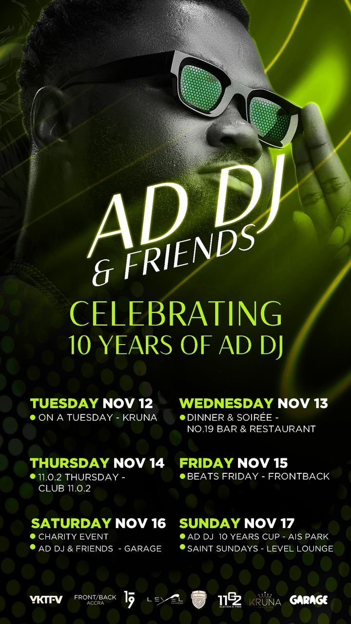 The soirée will include a special segment dedicated to showcasing AD DJ’s most memorable moments and achievements, spanning from his early days in Ghana to his appearances on international stages. This event provides a unique opportunity for fans, industry insiders, and peers to connect, reflect, and celebrate Ghanaian and African music’s vibrant growth.
