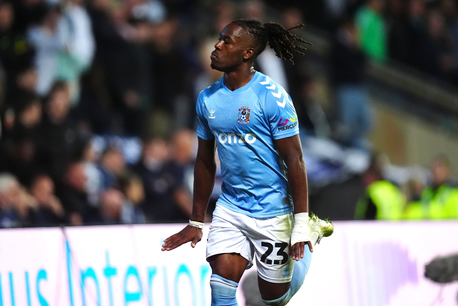 American forward Haji Wright smashed into the net the second goal of the game to double the Sky Blues’ lead before the halftime break.