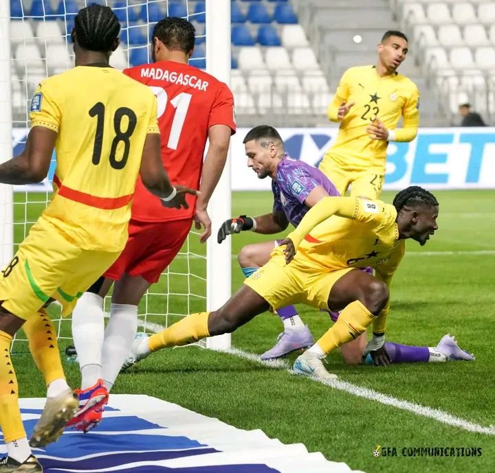 Black Stars delivered a commanding performance in their 2026 FIFA World Cup qualifier, defeating Madagascar 3-0 with Thomas Partey netting a brace and Mohammed Kudus adding a third.The Black Stars seized an early lead when Partey headed in a precise cross from captain Jordan Ayew. Despite Madagascar controlling 51% of possession, they struggled to penetrate Ghana’s resolute defence.Kudus came close to doubling the lead in the 15th minute but was denied by a sharp save from Madagascar’s goalkeeper.After the break, Ghana intensified their attacking pressure. Partey struck again, converting another Ayew delivery—this time from a corner—before Kudus sealed the victory with a composed finish, assisted once more by Ayew.Recommended For YouNews2025-03-19T16:54:33+00:00IGP carries out leadership reshuffle in Ghana Police ServiceEntertainment2025-03-20T08:40:29+00:00Mahama critic Okatakyie Afrifa Mensah reportedly arrested by National SecurityOkatakyie Afrifa Mensah, host of For the Records podcast and former Angel FM presenter, was allegedly arrested near Kingsby Hotel in Achimota, sparking condemnation from NPP leaders who describe the move as a threat to press freedom and democracy.News2025-03-20T07:07:57+00:00Armed National Security officers raid former BoG governor’s home, seize carsArmed National Security operatives have raided the house of former BoG Governor, Dr Ernest Addison, just a month after a similar operation at former Finance Minister Ken Ofori-Atta’s home.Madagascar’s best opportunity came late in the match, but goalkeeper Benjamin Asare stood firm to preserve the clean sheet.The win solidifies Ghana’s position at the top of Group I with 15 points, maintaining their strong push for World Cup qualification.Pulse Sports Ghana Player RatingsBenjamin Asare – 8/10The goalkeeper secured his second consecutive clean sheet for the national team, making three saves—including one crucial stop—despite facing limited pressure.Alexander Djiku – 6/10A solid defensive display, ensuring Madagascar found no openings through Ghana’s backline.Gideon Mensah – 6/10Reliable at left-back, contributing effectively to Ghana’s defensive stability.Mohammed Salisu – 7/10The Monaco defender nearly scored for the second straight game and remained composed under minimal pressure.Jerome Opoku – 7/10Delivered a strong performance, working seamlessly with the defensive unit to shut down attacks.Kingsley Schindler – 6/10Deployed as a right-back, the winger put in an average shift but fulfilled his defensive duties.Francis Abu – 8/10Controlled the midfield well, neutralising Madagascar’s creative threats and maintaining Ghana’s dominance.Thomas Partey – 9/10 (Man of the Match)The Arsenal midfielder scored twice—his first goals for Ghana since 2022—and dictated play with authority.Mohammed Kudus – 8/10Lively in midfield, showcasing his trademark dribbling and capping his performance with a well-taken goal.Jordan Ayew – 8/10The captain was instrumental, providing a hat-trick of assists and leading by example throughout the match.Antoine Semenyo – 6/10Had limited influence on the game but worked hard in his role.Ghana’s comprehensive victory reinforces their status as Group I favourites, with the team displaying both defensive solidity and attacking flair.