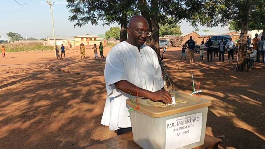 The Presidential Candidate of the ruling New Patriotic Party (NPP), Dr Mahamudu Bawumia, has cast his vote in the 2024 presidential and parliamentary elections at Walewale in the North East Region.The Vice President, spotted in a white smock and surrounded by party supporters, went through the voting process, casting his ballot for his preferred presidential and parliamentary candidates.Speaking to the media after observing the process, the Vice President expressed satisfaction with the voting process and optimism about being declared Ghana’s next President.While urging voters to come out in their numbers to cast their ballots, he stated: I must say, by the grace of God, I am very hopeful of winning this election. I think that we have done a lot of work. We have put our message to the people. I think the message has been well received. And I believe that by the grace of God, when all the ballots are counted, the NPP, myself and our parliamentary candidates will emerge victorious in this election.Dr Bawumia further called for a peaceful process during and after today’s election: So far, what I’m hearing in terms of reports around the country, there is calm, there is very little tension that I can see around the country. People are going to queue. In fact, I gather that people were queuing from midnight last night across the country.Dr. Mahamudu Bawumia, the New Patriotic Party’s (NPP) presidential candidate, has exercised his civic duty by casting his vote in Walewale, in the Northern Region of Ghana. pic.twitter.com/z8bTBeWIEY— SIKAOFFICIAL🦍 (@SIKAOFFICIAL1) December 7, 2024 Similarly, the NPP’s running mate, Dr Matthew Opoku Prempeh, popularly known as Napo, also cast his vote this morning at the Manhyia South Constituency in the Ashanti Region.Voting began at 7:00 am and is scheduled to end at 5:00 pm, paving the way for counting and the subsequent declaration of results.#GhanaDecides2024: Vice Presidential candidate of the New Patriotic Party, Dr. Matthew Opoku Prempeh, has voted in the Manhyia South district of the Ashanti Region.#TV3GH #ElectionCommandCentre pic.twitter.com/jXEZ0iHaTX— #TV3GH (@tv3_ghana) December 7, 2024
